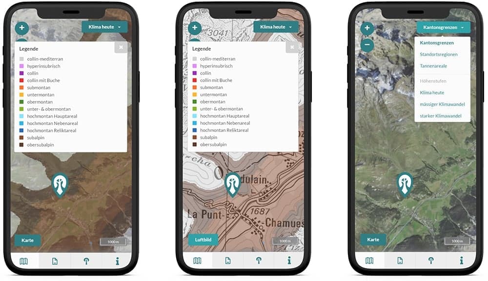 Zu diesem Thema hat geOps für die Eidgenössische Forschungsanstalt für Wald, Schnee und Landschaft WSL eine App für Baumartenempfehlungen entwickelt, die eine Hilfestellung für Entschei­dungen bei der Pflanzung und Pflege von Bäumen sein soll.